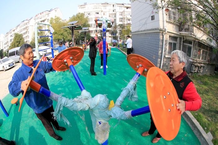 荣凤苑小区属于回迁安置小区,小区建成时间早,体育设施落后,为推进全民运动,助力全民健康,合肥市庐阳区在该小区安装智能健身器材,每个器材上都有一块太阳能电池板和灯泡,为夜间锻炼提供照明保障,而在健身器材中部还有一个智能显示屏,通过传感器能够实时记录运动时间、消耗能量、心率高低等锻炼数据,并语言播报给居民,让居民切实了解自身锻炼情况,居民也可以扫描器材上方二维码,建立自身运动数据库,系统会自动同步每次运动数据,帮助居民逐步提高运动水平,真正做到了科学健身、乐享运动。(杨赛君 赵明)