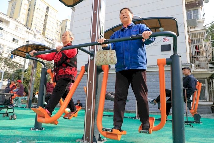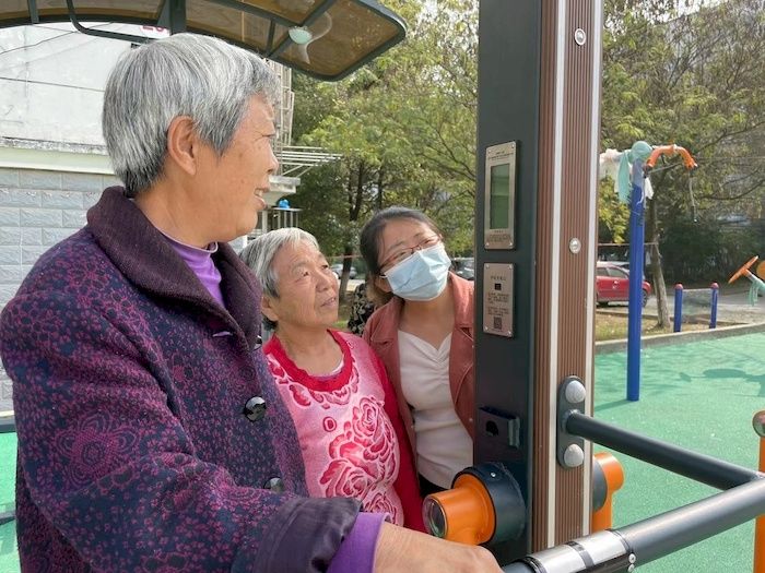 “这个双人漫步机太实用了,既能记录运动消耗卡路里,又能测量个人心率状况,我们老年人很喜欢!”10月29日,安徽省合肥市庐阳区林店街道区天河社区荣凤苑小区居民沈思香高兴地说道。